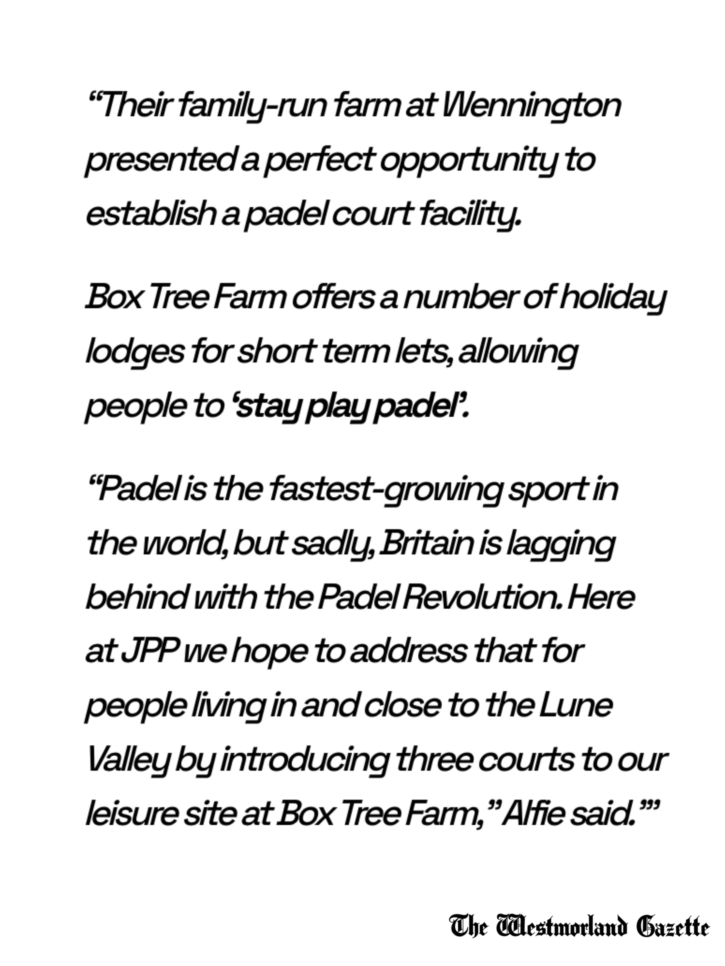The longterm health benefits of exercising in rural green spaces has long been established. Bringing Padel to the Lune Valley not only fulfills this criterea but also supports the local economy. This is something that has been achieved by Box Tree Farm for over 15 years now.
